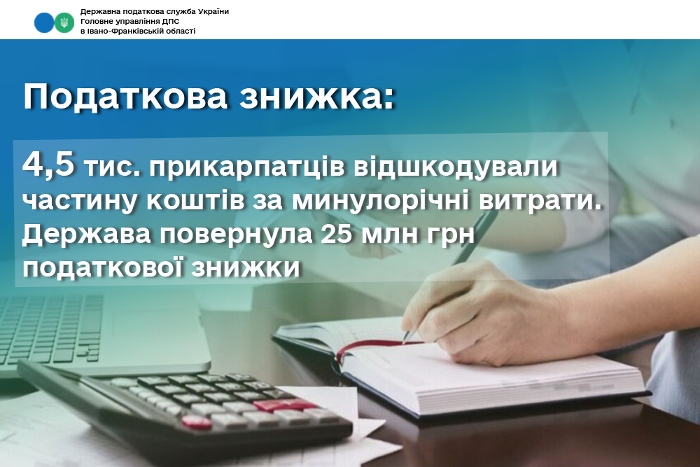 Майже 4,5 тисяч прикарпатців відшкодували частину коштів за минулорічні витрати. Держава повернула 25 мільйонів гривень податкової знижки