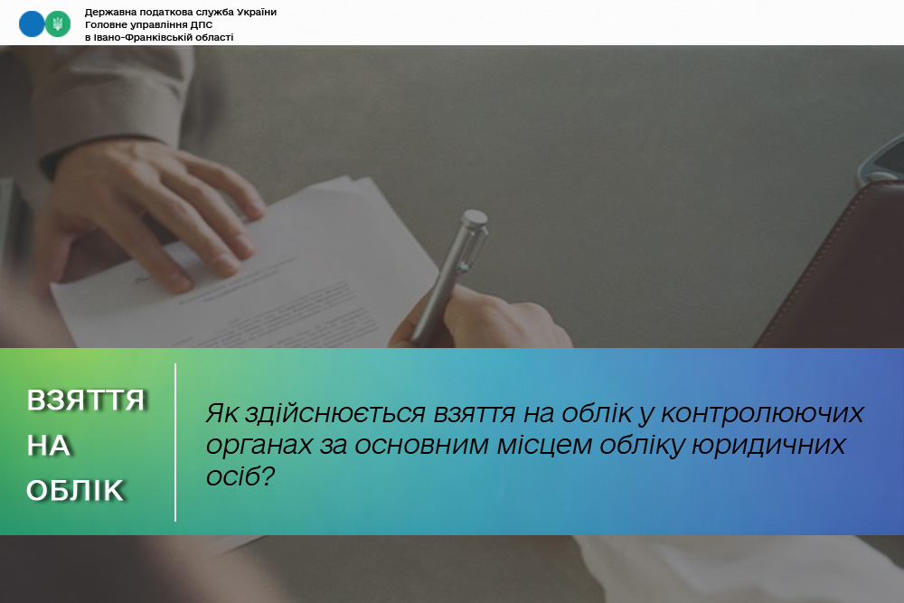 Згідно з п. 63.3 ст. 63 Податкового кодексу України з метою проведення податкового контролю платники податків підлягають реєстрації або взяттю на облік у контролюючих органах за місцезнаходженням юридичних осіб (основне місце обліку). Про це інформують в Головному управлінні ДПС в Івано-Франківській області.