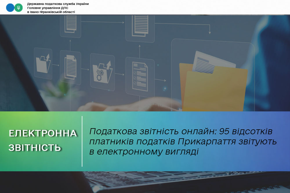 У березні 2026 року органами ДПС в Івано-Франківській області отримано 87,3 тис. звітних документів від 21,4 тис. платників податків, з яких 20,3 тис., або 95 відс., звітували в електронному вигляді.