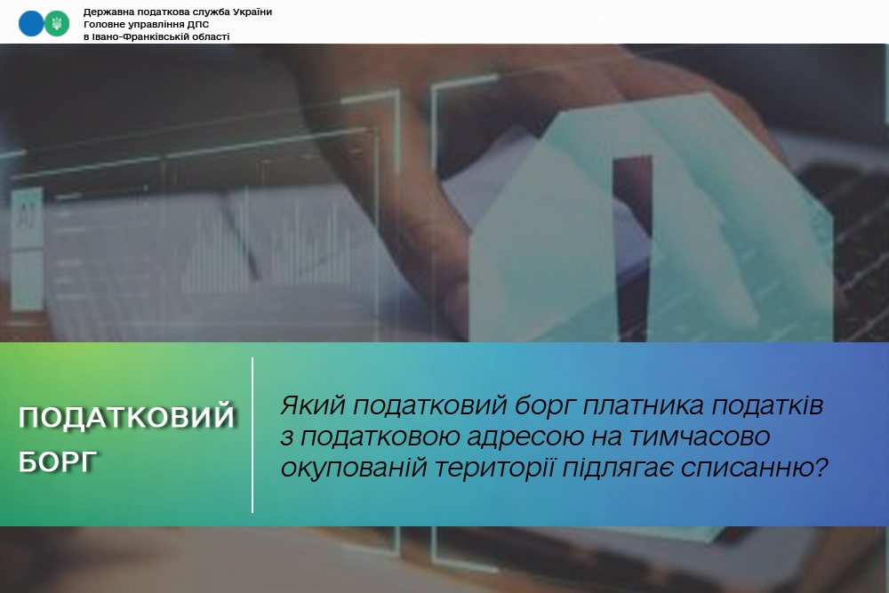 В Головному управлінні ДПС в Івано-Франківській області повідомляють, що списанню підлягає податковий борг (у тому числі штрафні санкції, пеня та несплачені проценти за користування розстроченням (відстроченням)), який виник у період з дати початку тимчасової окупації, визначеної Законом України «Про забезпечення прав і свобод громадян та правовий режим на тимчасово окупованій території України» (з 20 лютого 2014 року) та залишився несплаченим/непогашеним станом на дату прийняття рішення про списання такого боргу.