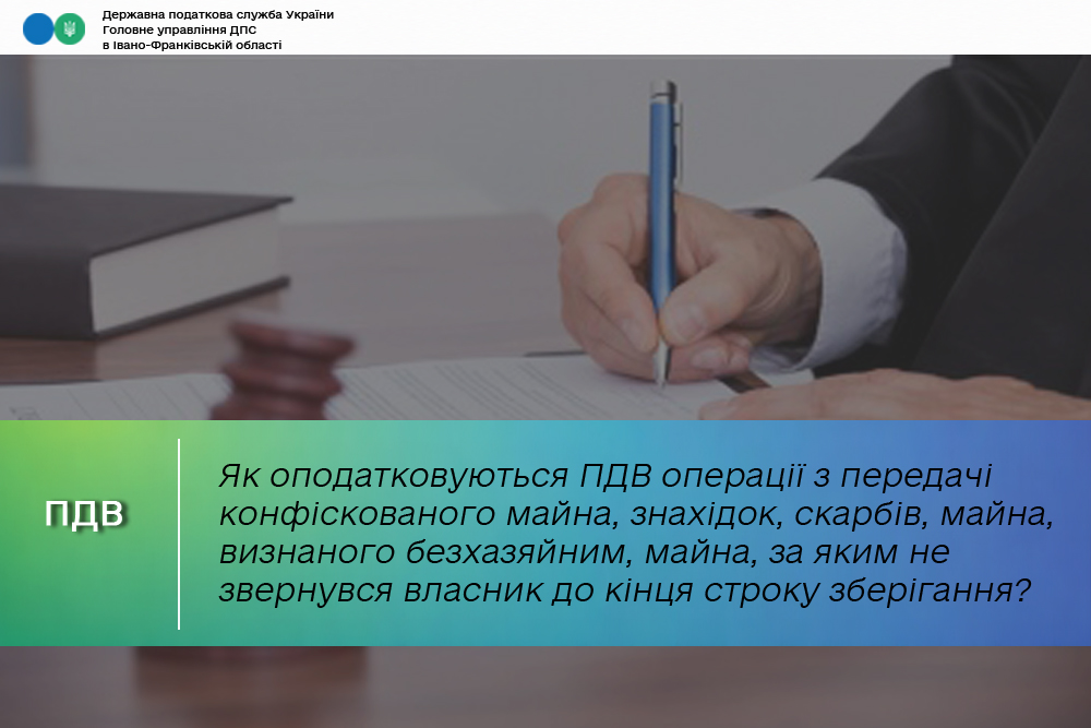 Як оподатковуються ПДВ операції з передачі конфіскованого майна, знахідок, скарбів, майна, визнаного безхазяйним, майна, за яким не звернувся власник до кінця строку зберігання, та майна, що за правом успадкування чи на інших законних підставах переходить у власність держави?