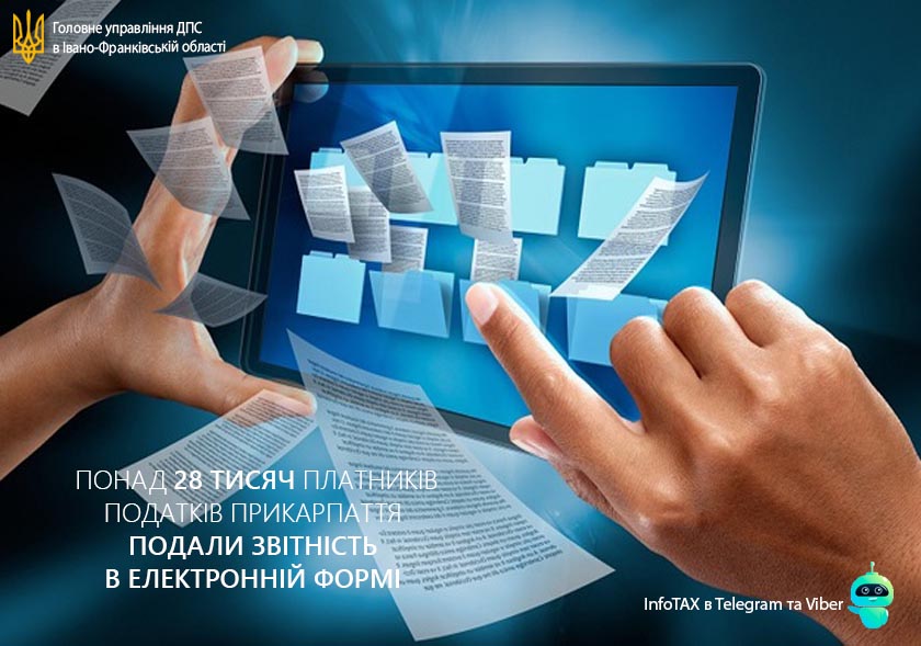 Як повідомили в Головному управлінні ДПС в Івано-Франківській області, понад 28 тисяч платників податків Прикарпаття в листопаді п.р. подали звітність до органів ДПС в електронній формі. З них понад 10 тис. платників при формуванні та поданні звітності скористалися послугами Електронного кабінету платника.