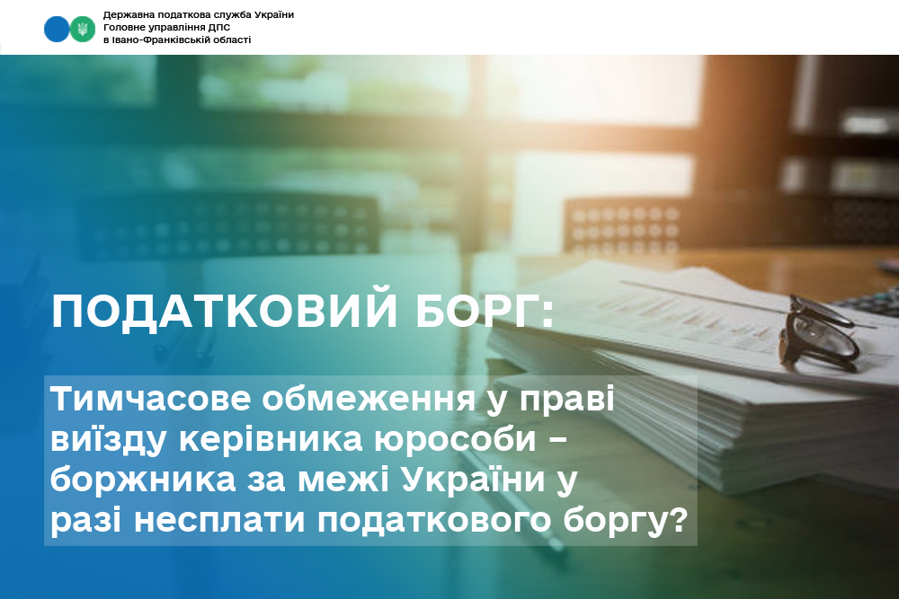 Відповідно до п. 87.13 ст. 87 глави 9 Податкового кодексу України у разі несплати протягом 240 календарних днів з дня вручення платнику податків податкової вимоги суми податкового боргу, що перевищує 1 мільйон грн., контролюючий орган може звернутися до суду за встановленням тимчасового обмеження у праві виїзду керівника юридичної особи або постійного представництва нерезидента – боржника за межі України – до погашення такого податкового боргу.