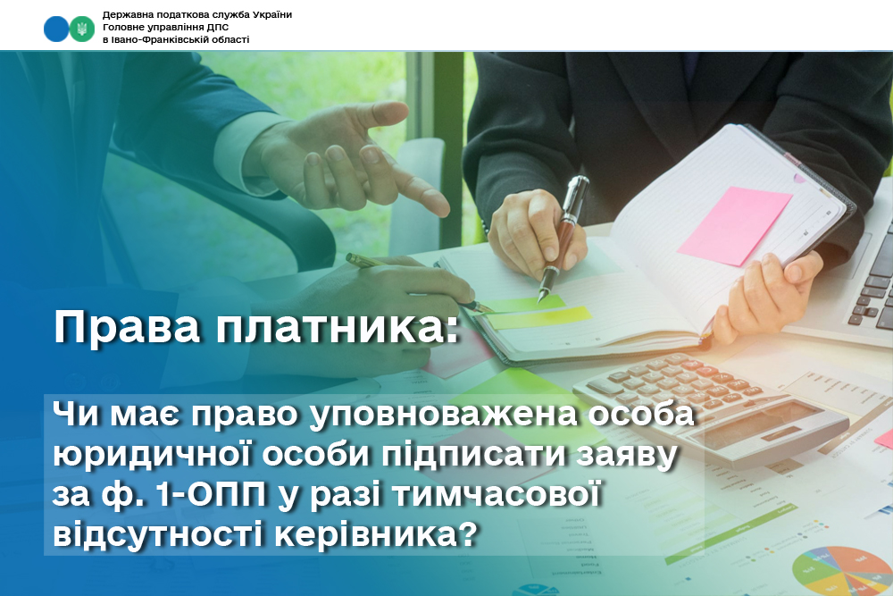 Чи має право уповноважена особа юридичної особи підписати заяву за ф. №1-ОПП у разі тимчасової відсутності керівника?