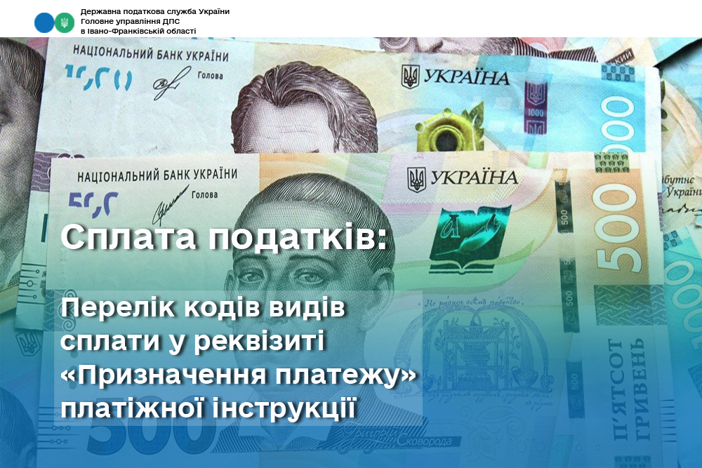 В Головному управлінні ДПС в Івано-Франківській області нагадують, що при сплаті податків, зборів, платежів, єдиного внеску платники використовують виключно структурований формат реквізиту «Призначення платежу» платіжної інструкції відповідно до міжнародного стандарту ISO 20022 (наказ Міністерства фінансів України від 22.03.2023 № 148 «Про затвердження Порядку заповнення реквізиту «Призначення платежу» платіжної інструкції під час сплати (стягнення) податків, зборів, митних, інших платежів, єдиного внеску на загальнообов’язкове державне соціальне страхування, внесення авансових платежів (передоплати), грошової застави, а також у разі їх повернення»).