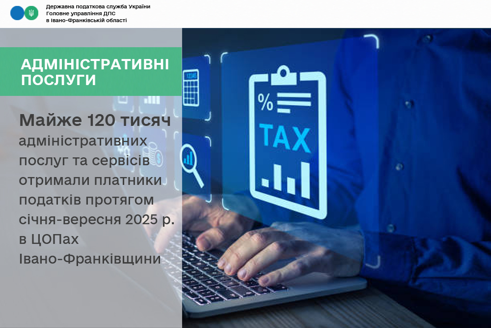 Як повідомили в Головному управлінні  ДПС в Івано-Франківській області області, за 9 місяців 2025 року фахівцями Центрів обслуговування платників, що діють при Державних податкових інспекціях ГУ ДПС надано майже 120 тисяч адміністративних послуг.