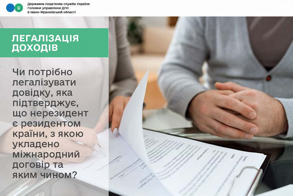 Чи потрібно легалізувати довідку, яка підтверджує, що нерезидент є резидентом країни, з якою укладено міжнародний договір та яким чином?