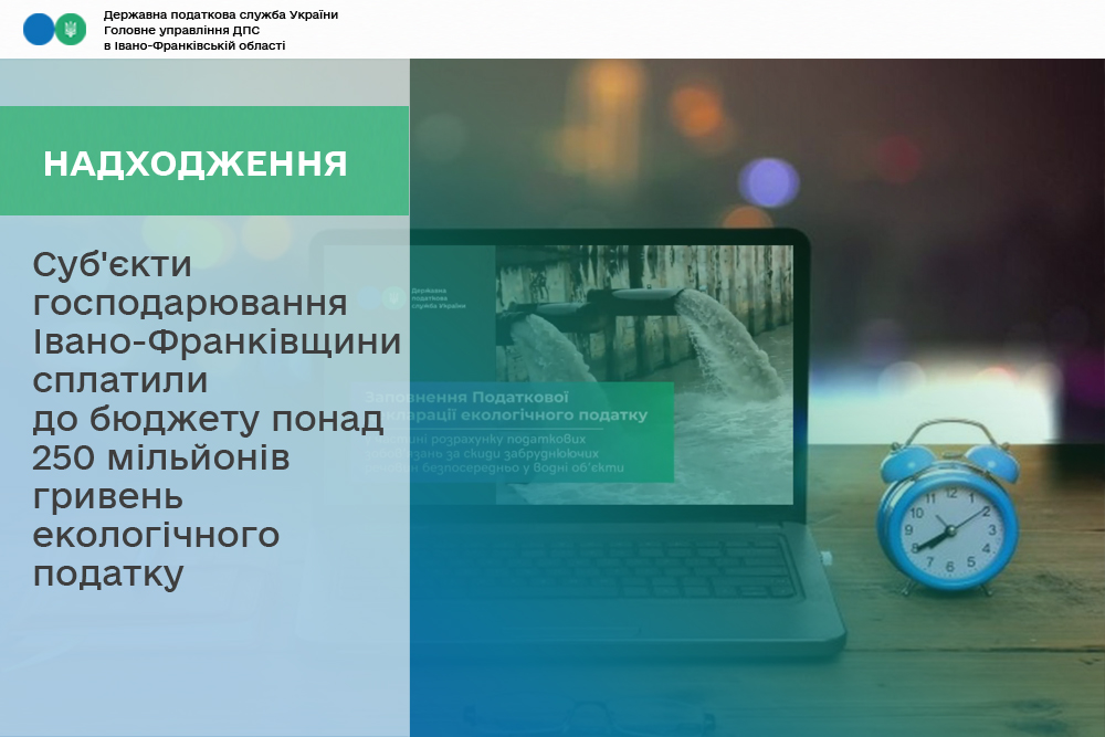 З початку року суб'єкти господарювання Івано-Франківщини сплатили до бюджету понад 250 мільйонів гривень екологічного податку