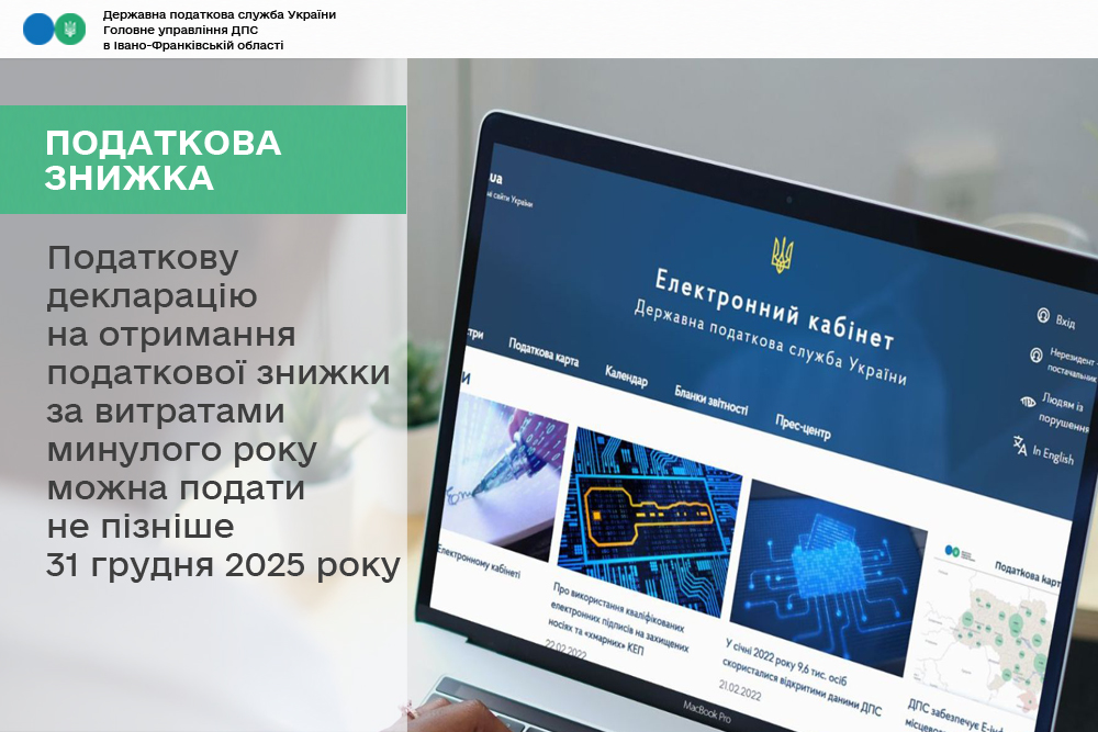 Податкову декларацію та документи на отримання податкової знижки за витратами 2024 року можна подати не пізніше 31 грудня 2025 року.