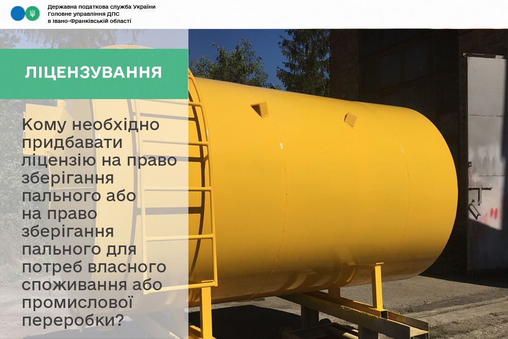 Згідно з ст. 28 Закону України від 18 червня 2024 року № 3817-IX «Про державне регулювання виробництва і обігу спирту етилового, спиртових дистилятів, біоетанолу, алкогольних напоїв, тютюнових виробів, тютюнової сировини, рідин, що використовуються в електронних сигаретах, та пального» зберігання пального здійснюється суб’єктами господарювання за наявності ліцензії на право зберігання пального або на право зберігання пального виключно для потреб власного споживання та/або промислової переробки.