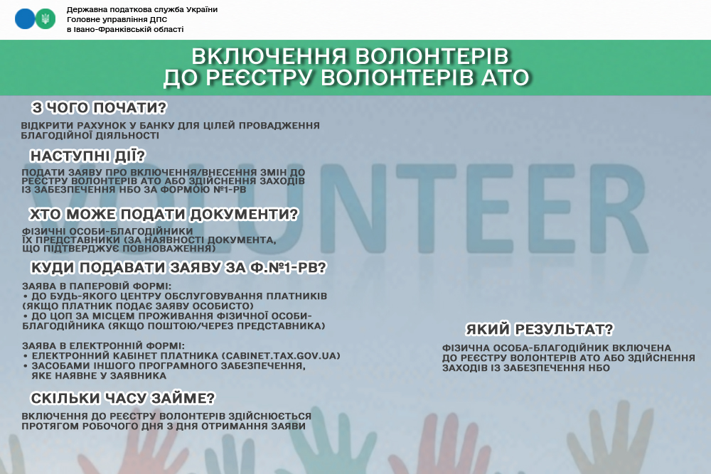 Листівка " Включення волонтерів до реєстрів волонтерів АТО"