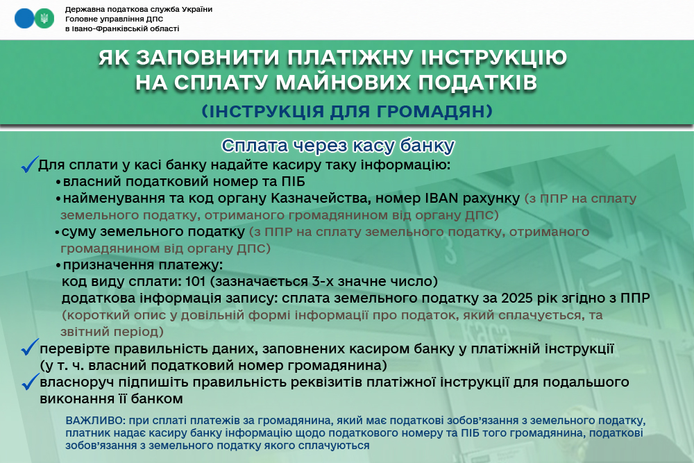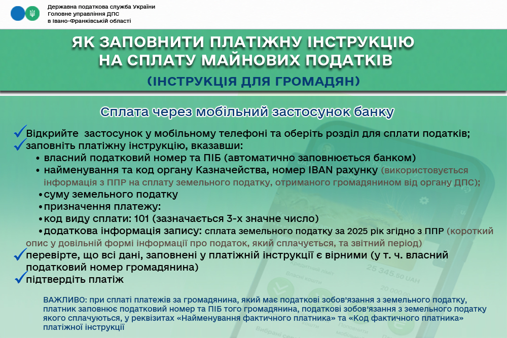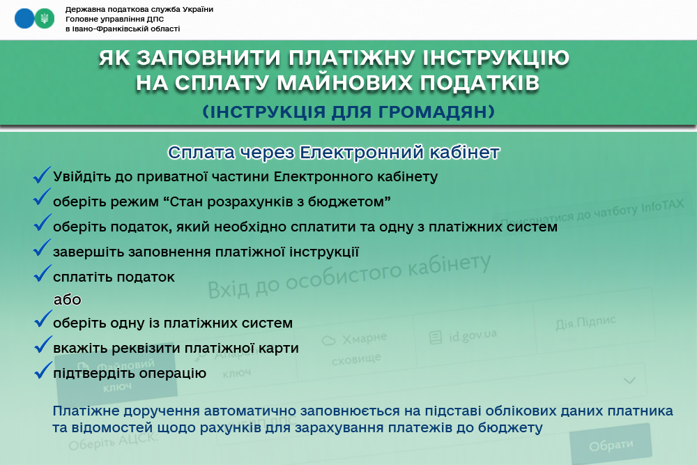 Листівка "Як заповнити платіжну інструкцію на сплату майнових податків"