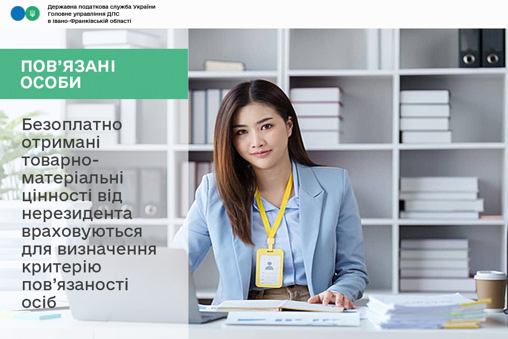 Враховуючи викладене, товарно-матеріальні цінності, отримані від нерезидента враховуються для визначення критерію пов’язаності осіб відповідно до підпункту 14.1.159 пункту 14.1 статті 14 ПКУ.