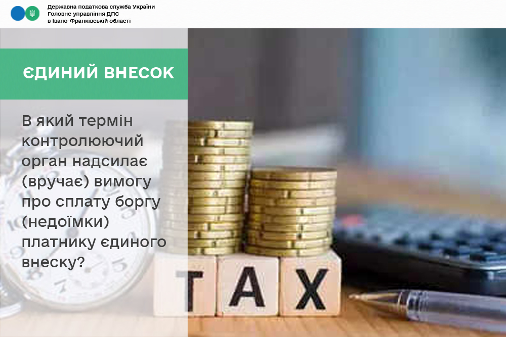 Контролюючий орган надсилає (вручає) вимогу про сплату боргу (недоїмки) платнику єдиного внеску протягом трьох робочих днів з дня її винесення.