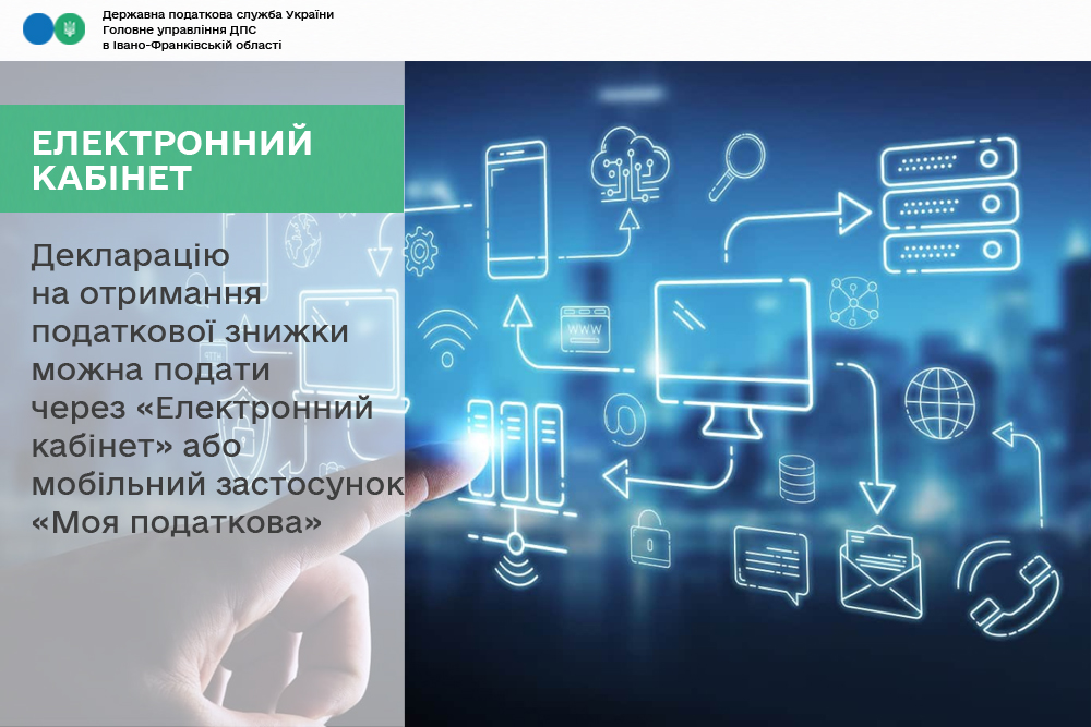 В Головному управлінні ДПС в Івано-Франківській області нагадують, що для отримання податкової знижки громадянину необхідно подати декларацію про майновий стан та доходи до контролюючого органу, в якому він перебуває на обліку. Податкову декларацію та документи на отримання податкової знижки за витратами 2024 року громадяни можуть подати через Електронний кабінет платника або мобільний застосунок «Моя податкова» не пізніше 31 грудня 2025 року.