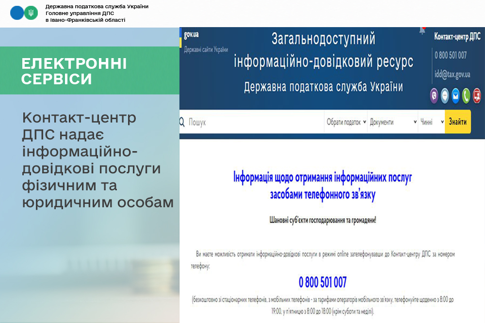 В Головному управлінні ДПС в Івано-Франківській області нагадують, що суб’єкти господарювання та громадяни мають можливість отримати інформаційно-довідкові послуги зателефонувавши до Контакт-центру ДПС за номером телефону: 0 800501 007.