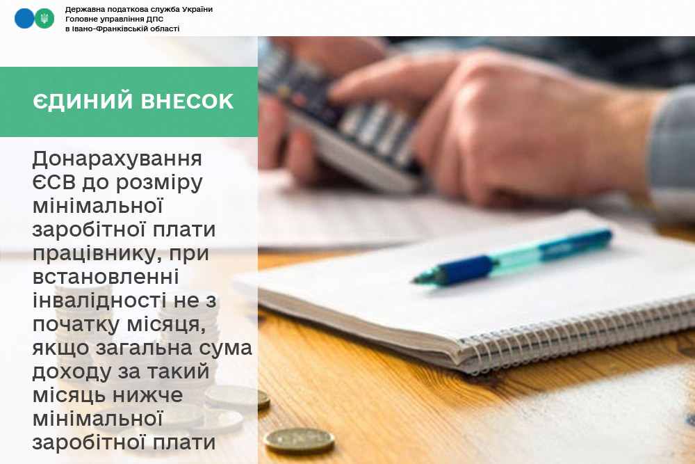 Донарахування єдиного внеску до розміру мінімальної заробітної плати працівнику, при встановленні інвалідності не з початку місяця, якщо загальна сума доходу за такий місяць нижче мінімальної заробітної плати