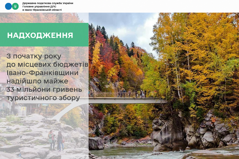 За січень – вересень 2025 року до місцевих бюджетів Івано-Франківщини надійшло 32,5 мільйона гривень туристичного збору, що на 9,7 мільйона гривень більше, ніж торік.