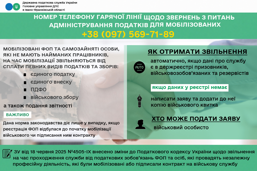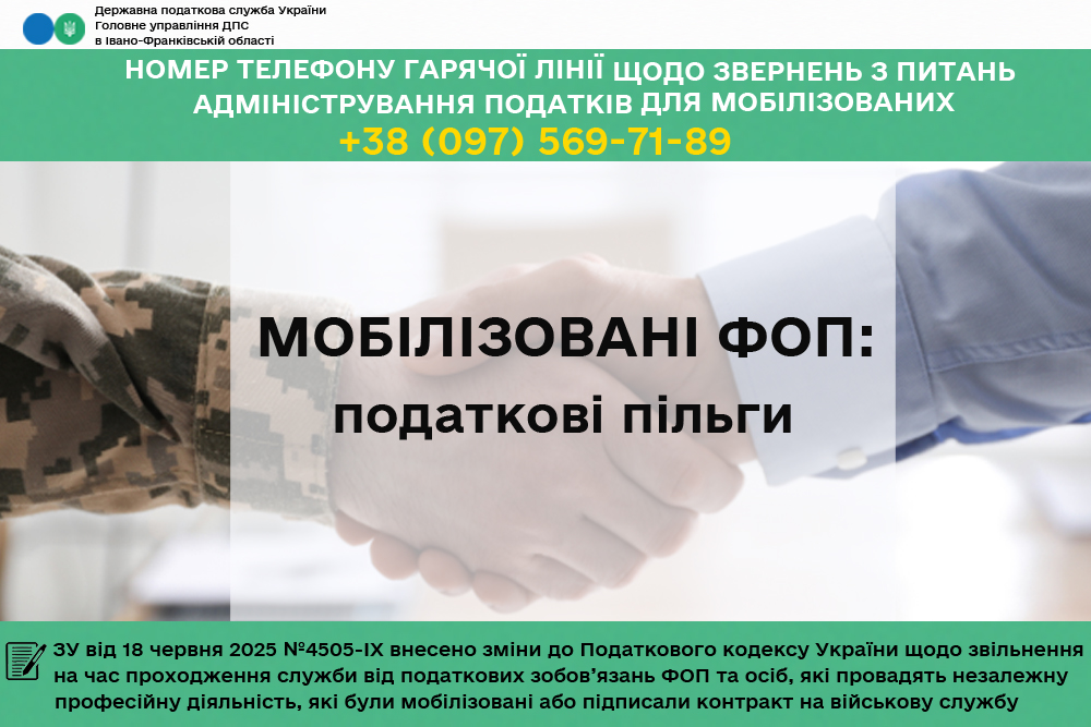 Листівка "Податкові пільги для мобілізованих ФОП"