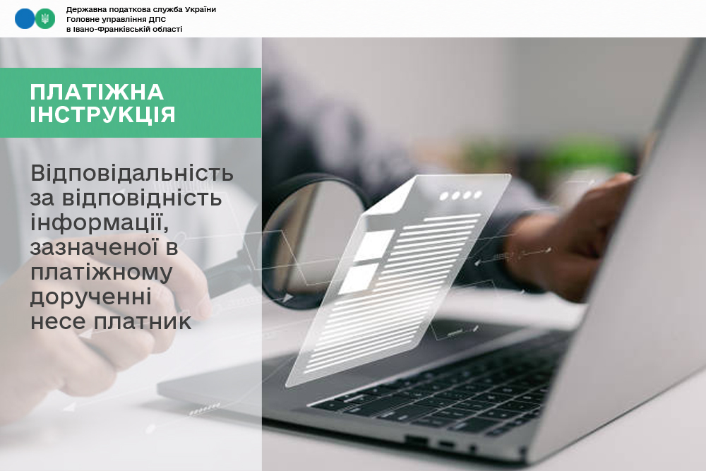 Платник несе відповідальність перед надавачем платіжних послуг, що його обслуговує, за відповідність інформації, зазначеної ним у платіжній інструкції, суті платіжної операції відповідно до умов договору.