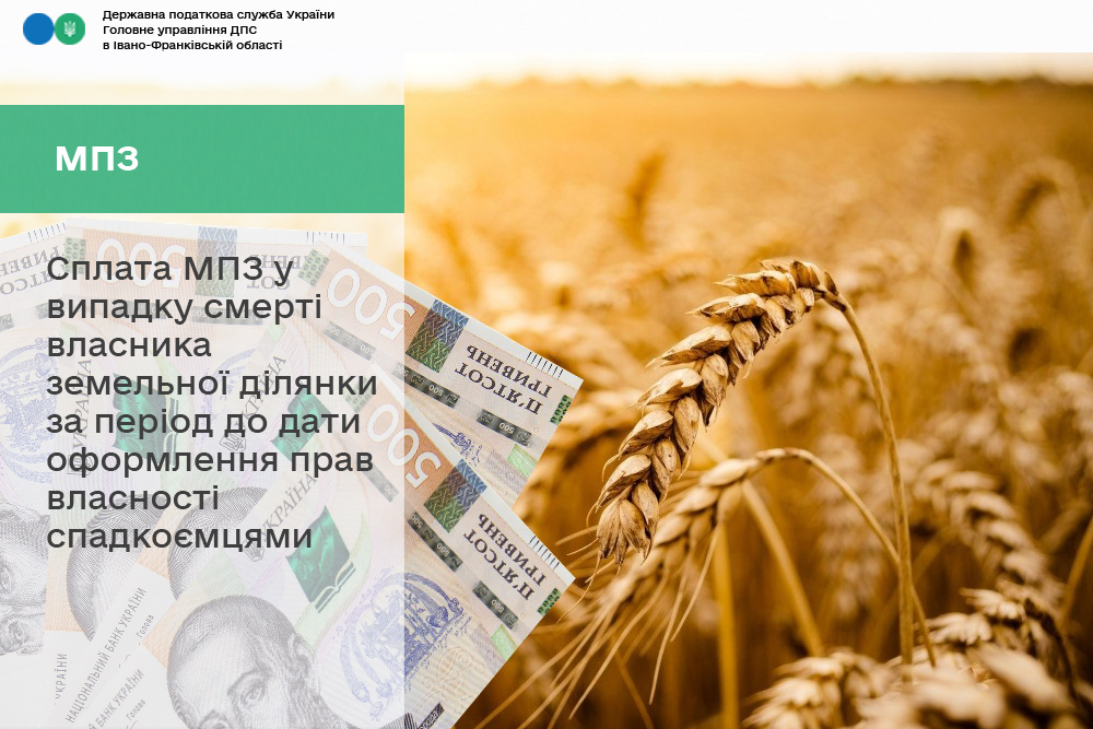 Спадкоємці фізичної особи – власника земельної ділянки, які у загальновстановленому порядку отримали право власності на земельну ділянку або скористались своїм правом на оренду земельної ділянки після смерті фізичної особи – орендаря і оформили у загальновстановленому порядку договір оренди земельної ділянки державної та комунальної власності, сплачують МПЗ, яке визначається за період починаючи з місяця, в якому вони набули право власності або право користування, у тому числі оренди, емфітевзису, суборенди на таку земельну ділянку.