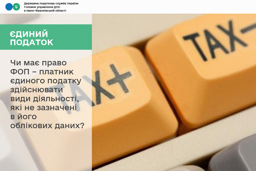 Враховуючи те, що здійснення видів діяльності, не зазначених у реєстрі платників єдиного податку, є підставою для переходу платника єдиного податку на загальну систему оподаткування, фізична особа – підприємець – платник єдиного податку не має права здійснювати види діяльності, які не зазначені в його облікових даних.