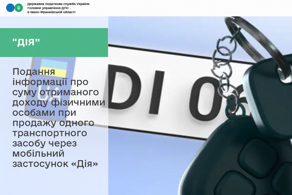 Подання інформації про суму отриманого доходу фізичними особами при продажу одного транспортного засобу через мобільний застосунок «Дія»
