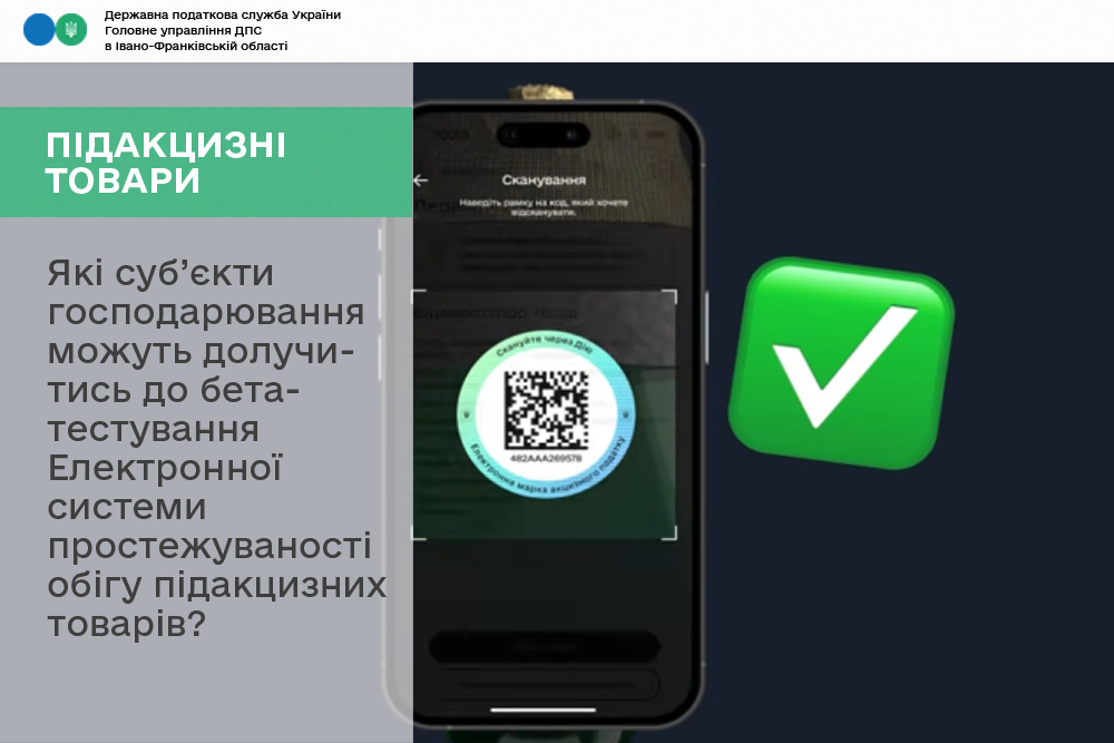 Відповідно до п. 2 постанови Кабінету Міністрів України від 4 жовтня 2024 року № 1142 «Деякі питання створення та функціонування Електронної системи обігу алкогольних напоїв, тютюнових виробів та рідин, що використовуються в електронних сигаретах» з 1 березня до 31 грудня 2025 року проводиться випробування функціонування програмного забезпечення Електронної системи обігу алкогольних напоїв, тютюнових виробів та рідин, що використовуються в електронних сигаретах у тестовому режимі на засадах добровільності, безоплатності, за участю суб’єктів господарювання, які здійснюють виробництво та/або імпорт та/або оптову та/або роздрібну торгівлю товарами (продукцією), маркованими графічними елементами електронних марок акцизного податку.