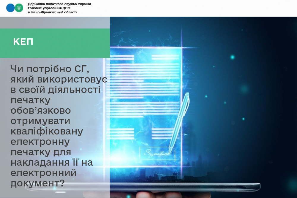 Чи потрібно СГ, який використовує в своїй діяльності печатку (для проставлення відбитку на документах створених у паперовій формі), обов’язково отримувати кваліфіковану електронну печатку для накладання її на електронний документ?