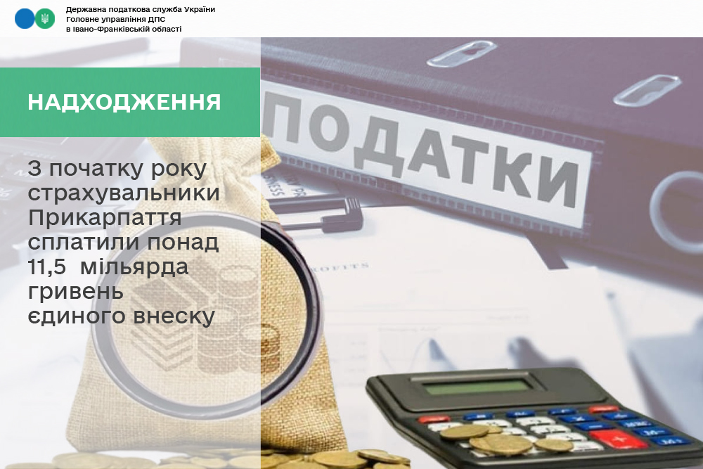 - З початку року страхувальники Прикарпаття сплатили понад 11,5 мільярда гривень єдиного внеску
