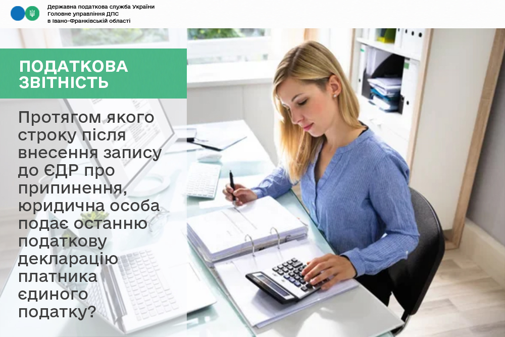 Протягом якого строку після внесення запису до ЄДР про припинення, юридична особа подає останню податкову декларацію платника єдиного податку?