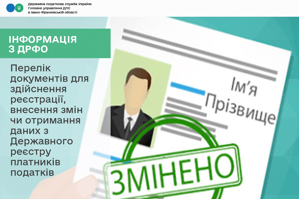 В Головному управлінні ДПС в Івано-Франківській області інформують, що для проведення реєстрації, внесення змін, отримання картки платника податків або відомостей з Державного реєстру фізичних осіб – платників податків використовуються дані документа, що посвідчує особу: