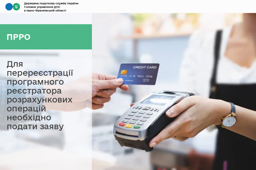 Для перереєстрації необхідно подати Заяву про реєстрацію програмних реєстраторів розрахункових операцій за формою №1-ПРРО (ідентифікатор форми J/F 1316605) з позначкою «Перереєстрація».