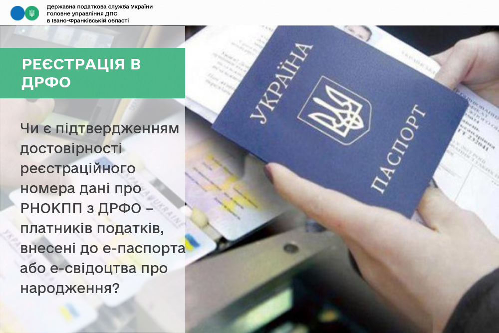 Згідно з п. 11 розд. IІІ Положення про реєстрацію фізичних осіб у Державному реєстрі фізичних осіб – платників податків, затвердженого наказом Міністерства фінансів України від 29.09.2017 № 822 фізична особа – платник податків може подавати дані про реєстраційний номер облікової картки платника податків, зокрема як внесені до е-паспорта, е-паспорта для виїзду за кордон, е-свідоцтва про народження, так і окремо, як електронну копію документа, що засвідчує реєстрацію такої особи в ДРФО засобами Єдиного державного вебпорталу електронних послуг «Портал Дія», у тому числі з використанням мобільного додатка Порталу Дія, за умови здійснення перевірки відповідності та підтвердження таких реєстраційних даних.