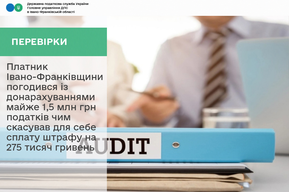 За результатами перевірки діяльності одного з підприємств Івано-Франківщини податковий аудит виявив ряд порушень податкового законодавства та донарахував до сплати в бюджет 1,494 мільйона гривень податкових платежів.