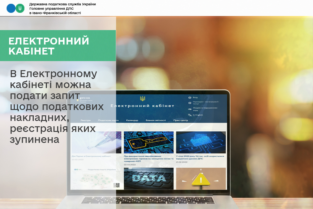 В Електронному кабінеті можна подати запит щодо податкових накладних, реєстрація яких зупинена