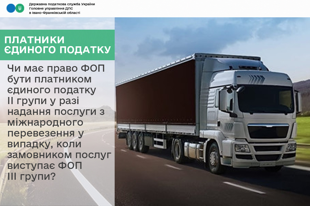 Чи має право ФОП бути платником єдиного податку другої групи у разі надання послуги з міжнародного перевезення у випадку, коли замовником таких послуг виступає підприємець третьої групи єдиного податку