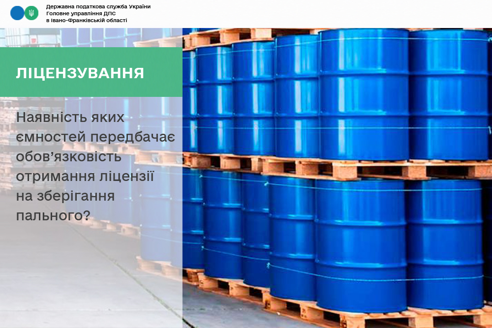 Зберігання пального виключно для потреб власного споживання та/або промислової переробки у споживчій тарі, тарі споживача та поворотній тарі (газових балонах), кожна об’ємом до 60 літрів включно без отримання ліцензії на право зберігання пального, на право зберігання пального виключно для потреб власного споживання та/або промислової переробки.