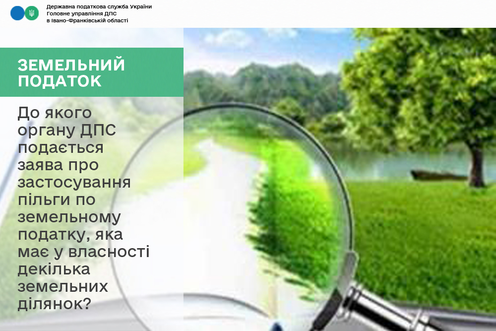 Отже, Заява про застосування пільги із земельного податку (разом з документами, що посвідчують право пільгу) подається до контролюючого органу ДПС за місцем знаходження будь-якої земельної ділянки (у т. ч., якщо такі ділянки знаходяться на території різних територіальних громад, які обслуговуються різними органами ДПС).