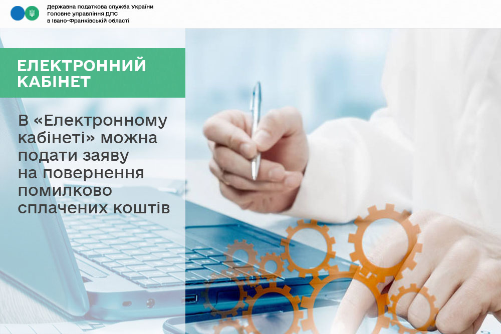В Головному управлінні ДПС в Івано-Франківській області нагадують, що через приватну частину «Електронного кабінету» платники податків можуть подати заяву про повернення помилково сплачених коштів.
