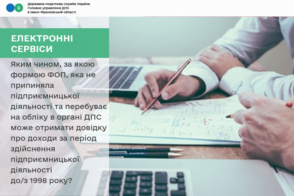 Яким чином, за якою формою ФОП, яка не припиняла підприємницької діяльності та перебуває на обліку в органі ДПС може отримати довідку про доходи за період здійснення підприємницької діяльності до/з 1998 року?