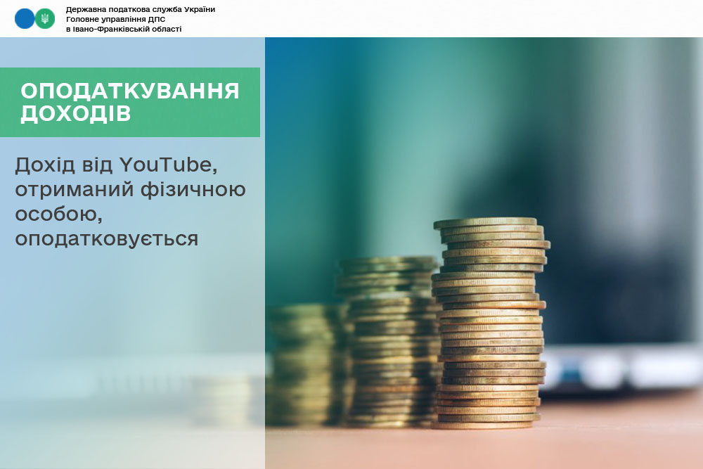 В Головному управлінні ДПС в Івано-Франківській області звертають увагу, що діяльність зі створення відео контенту та його розміщення на YouTube з метою отримання доходу від реклами є частиною господарської діяльності ФОП. Тому, у разі якщо реклама YouTube, яка розміщується YouTube у відеоматеріалах, створених фізичною особою – підприємцем – платником єдиного податку, кошти отримані від YouTube та зараховані на рахунок, відкритий у банківській установі в Україні для здійснення підприємницької діяльності (впродовж звітного періоду, але не пізніше річного податкового (звітного) періоду) включаються в дохід фізичної особи – підприємця – платника єдиного податку та оподатковуються у порядку згідно з главою 1 розд. XIV Податкового кодексу України від 02 грудня 2010 року № 2755-VI.