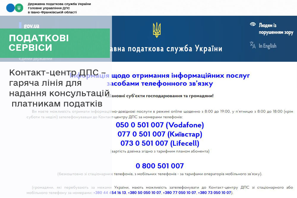 В Головному управлінні ДПС в Івано-Франківській області нагадують платникам податків, що для швидких довідок та консультацій працює Контакт – центр ДПС. Тут суб’єкти господарювання та громадяни можуть: