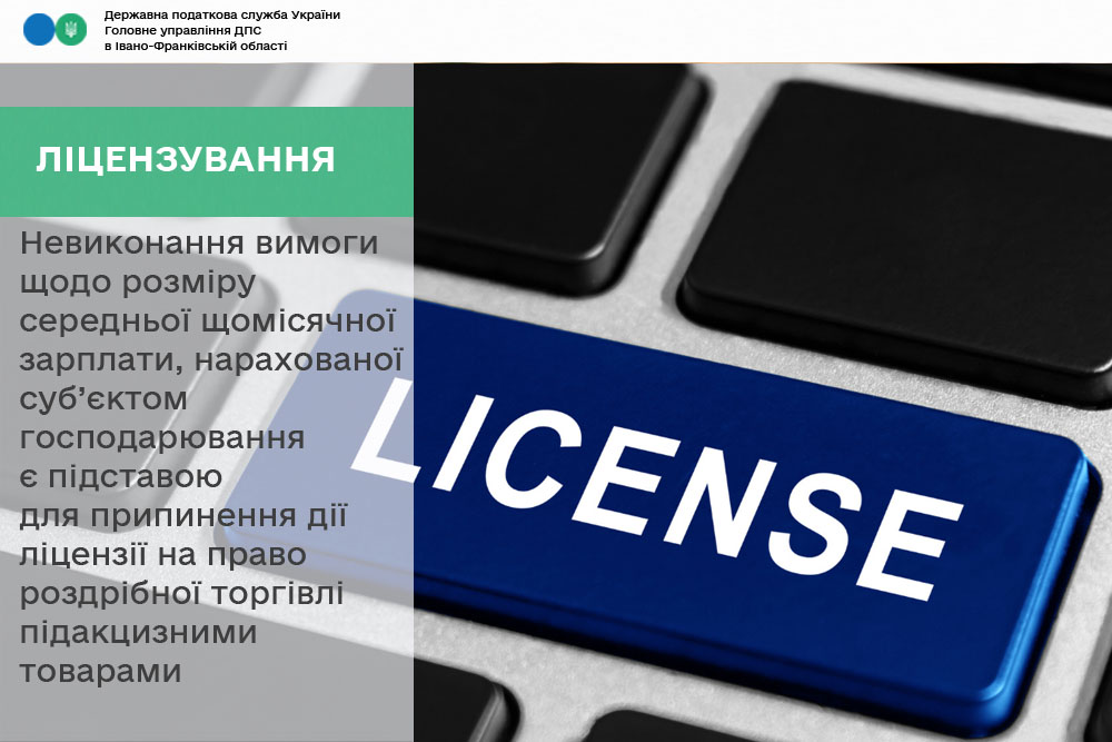 Державна податкова служба України надала роз’яснення, що у разі невідповідності розміру середньої щомісячної заробітної плати, нарахованої суб’єктом господарювання, розміру, визначеному частиною тринадцятою статті 42 Закону № 3817, протягом трьох повних календарних місяців поспіль у період дії ліцензії здійснюється припинення дії всіх ліцензій на право роздрібної торгівлі підакцизними товарами, отриманих таким суб’єктом господарювання.