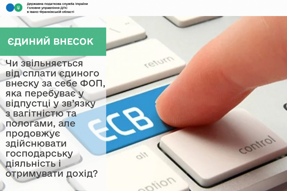 Чи звільняється від сплати єдиного внеску за себе ФОП, яка перебуває у відпустці у зв’язку з вагітністю та пологами, але продовжує здійснювати господарську діяльність і отримувати дохід, та чи потрібно повідомляти контролюючий орган про факт сплати за неї