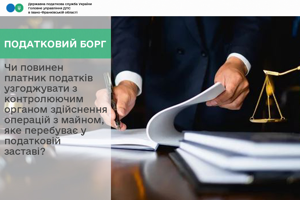 Чи повинен платник податків узгоджувати з контролюючим органом здійснення операцій з майном, яке перебуває у податковій заставі?
