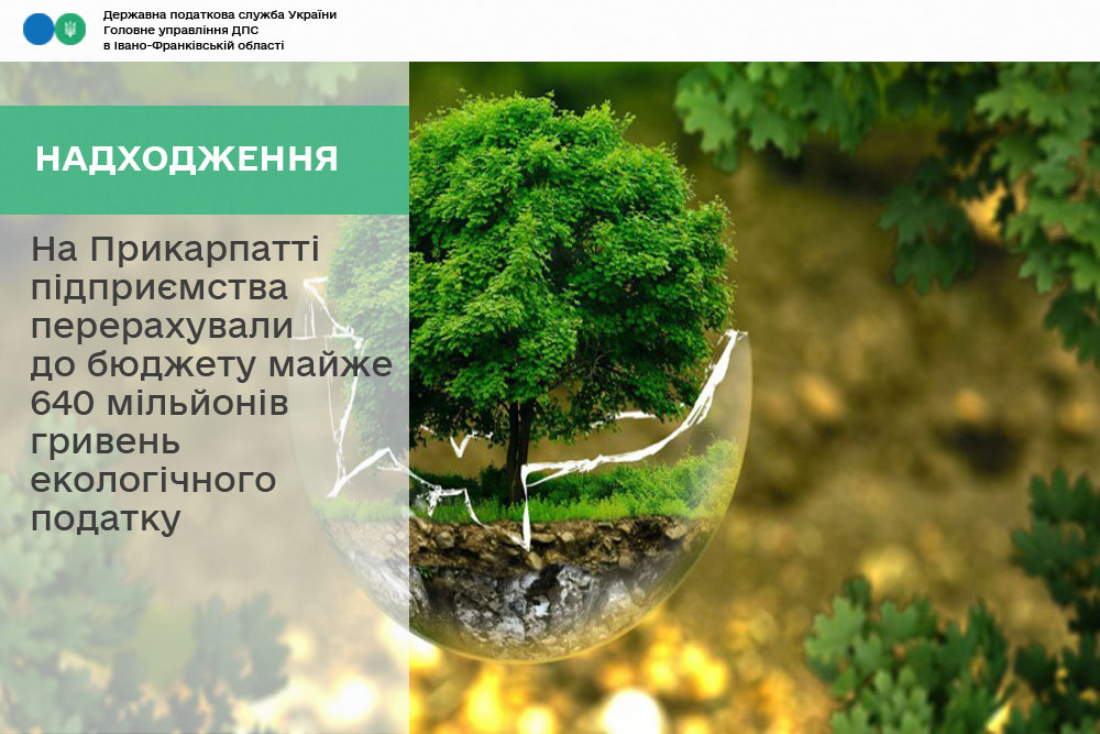 На Івано-Франківщині протягом січня – листопада 2025 року платники екологічного податку перерахували до зведеного бюджету 639,5 мільйона гривень екологічного податку, що на 161,7 мільйона гривень більше, ніж торік. Про це повідомили в Головному управлінні ДПС в Івано-Франківській області.