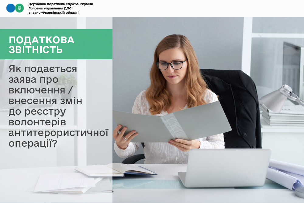 Для включення до Реєстру волонтерів антитерористичної операції та/або здійснення заходів із забезпечення національної безпеки і оборони, відсічі і стримування збройної агресії Російської Федерації (далі – Реєстр волонтерів) фізична особа – благодійник подає до територіального органу ДПС у паперовій або електронній формі Заяву про включення/внесення змін до Реєстру волонтерів антитерористичної операції та/або здійснення заходів із забезпечення національної безпеки і оборони, відсічі і стримування збройної агресії Російської Федерації за формою № 1-РВ (додаток 3)  з позначкою «Включення до реєстру». Про це інформують в Головному управлінні ДПС в Івано-Франківській області.
