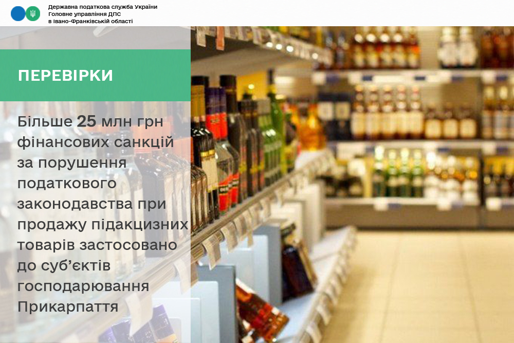 Впродовж січня-листопада 2025 року податківці Івано-Франківщини провели 752 перевірки суб’єктів господарювання, які працюють у сфері обігу алкогольних напоїв, тютюнових виробів та палива. За їх результатами до суб’єктів господарювання за порушення Закону України «Про державне регулювання виробництва та обігу спирту етилового, спиртових дистилятів, біоетанолу, алкогольних напоїв, тютюнових виробів, тютюнової сировини, рідин, що використовуються в електронних сигаретах та пального» застосовано 25,2 мільйона гривень фінансових санкцій. Про це повідомили в Головному управлінні ДПС в Івано-Франківській області.