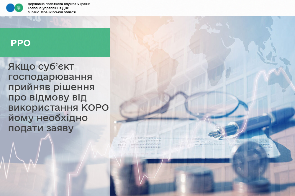 Якщо суб’єкт господарювання прийняв рішення про відмову від використання КОРО йому необхідно подати заяву